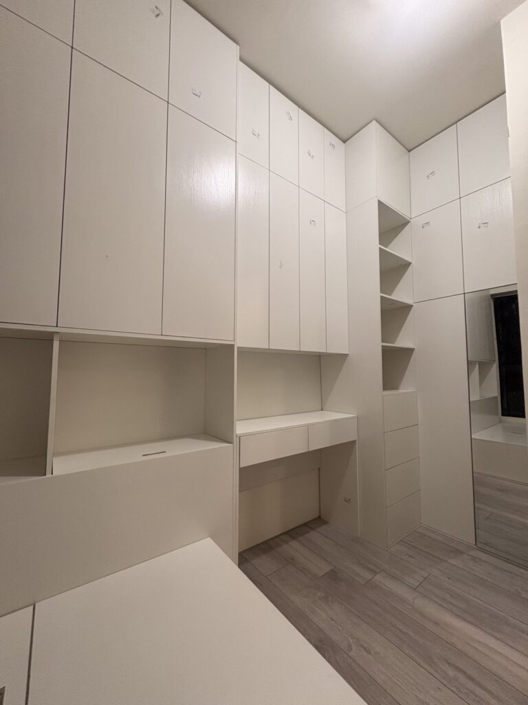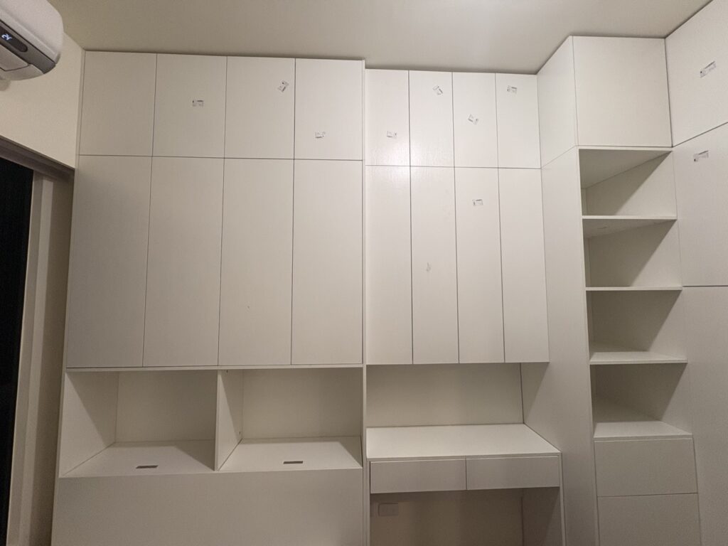全櫃體使用 1.7公分實心生態板,現場由師傅鎖牆加強固定,穩固耐用。