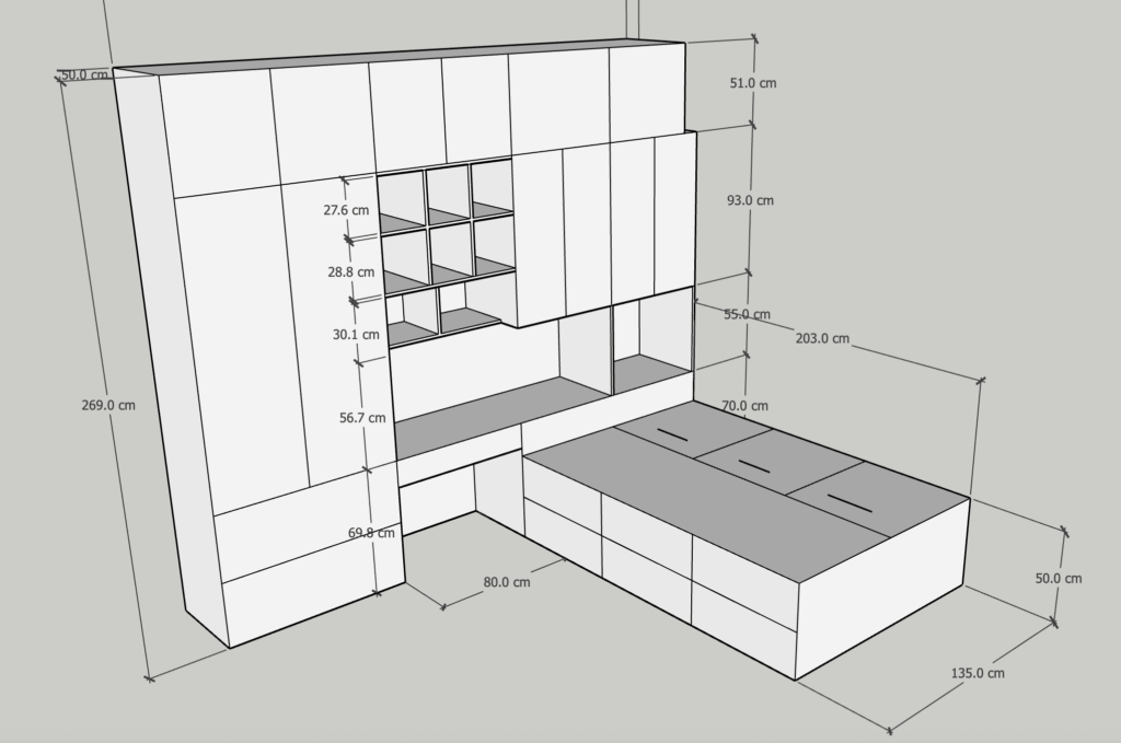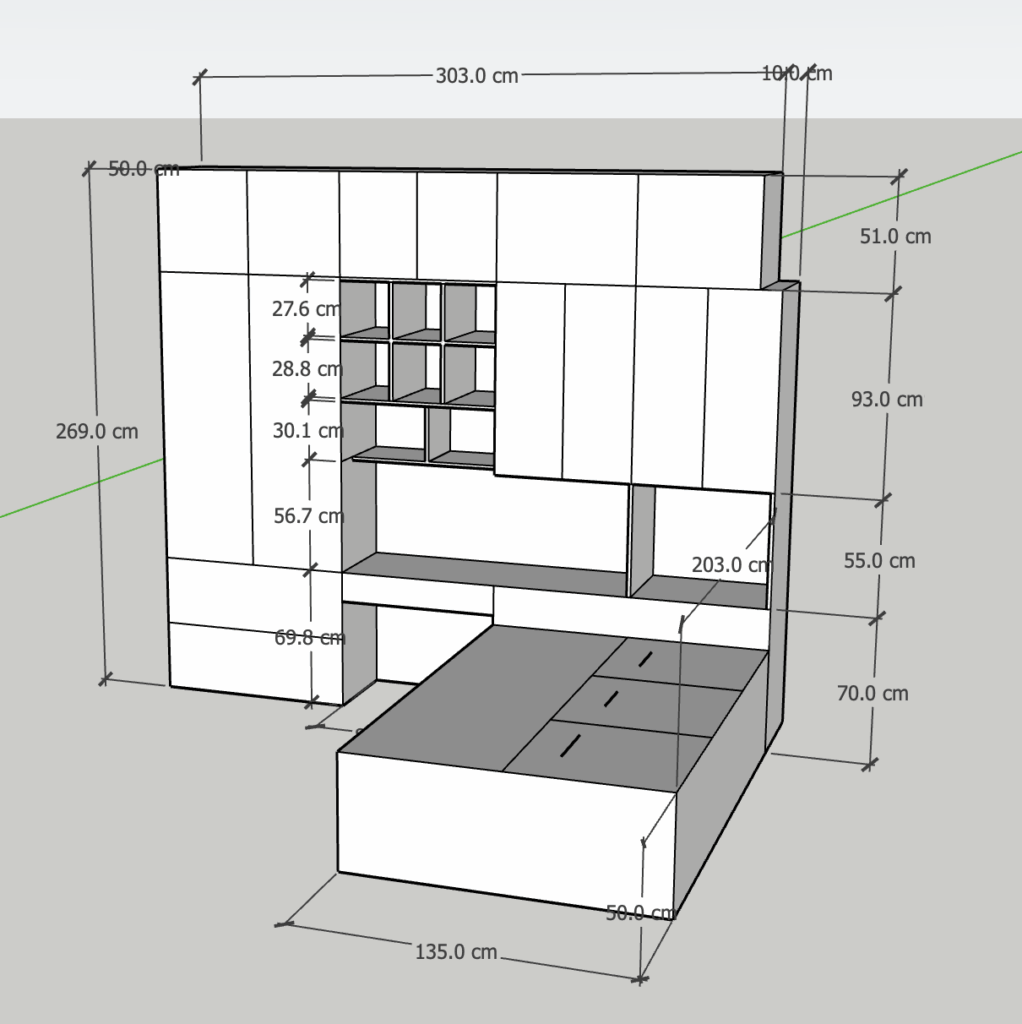 這次的設計,把「床、書桌、衣櫃」完美整合,