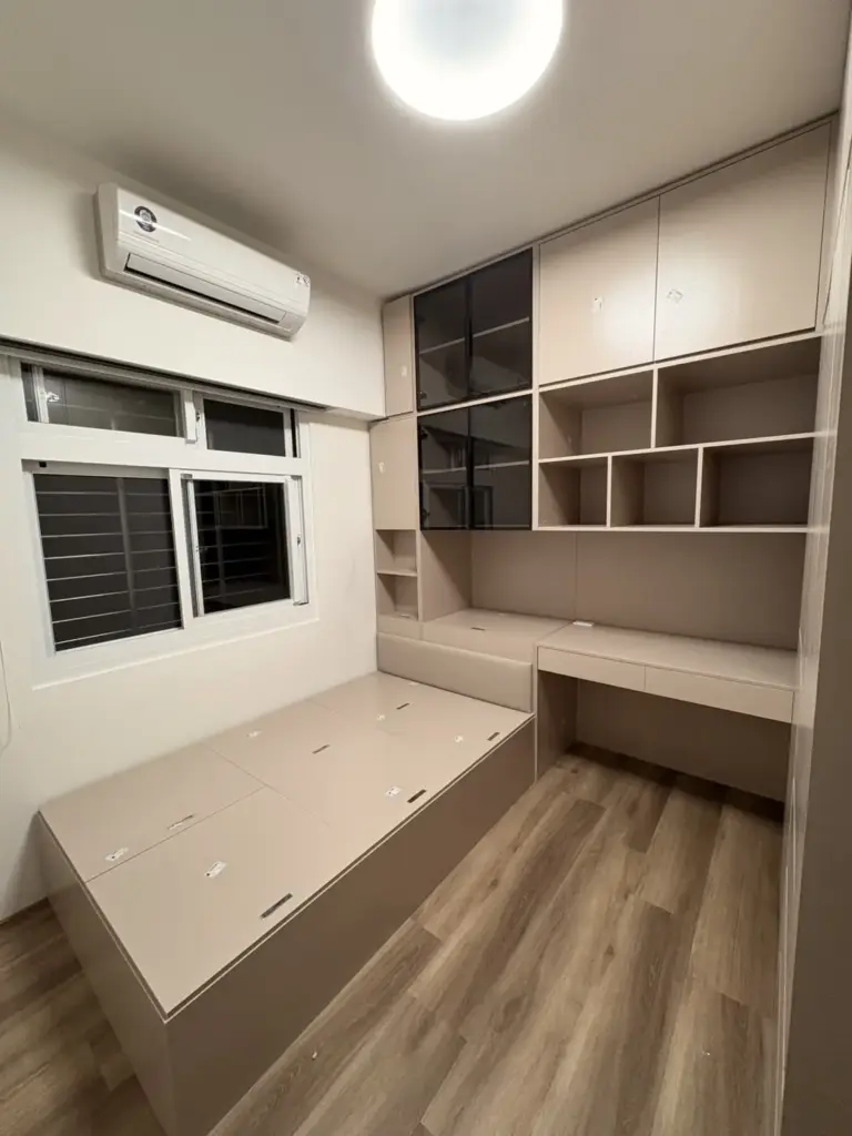 這張圖展示了隱形式收納床(增特高設計)的實際成品效果