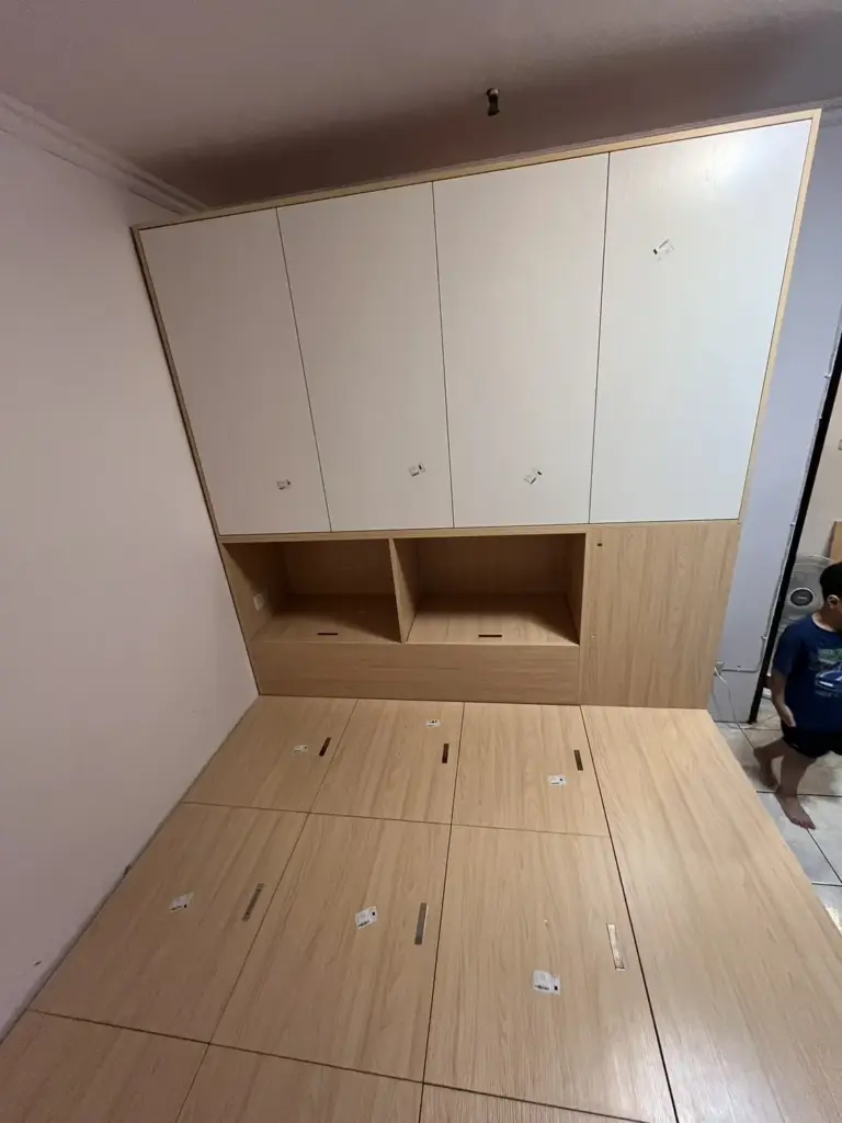 這張圖展示了隱形式收納床(增高設計)的實際成品效果