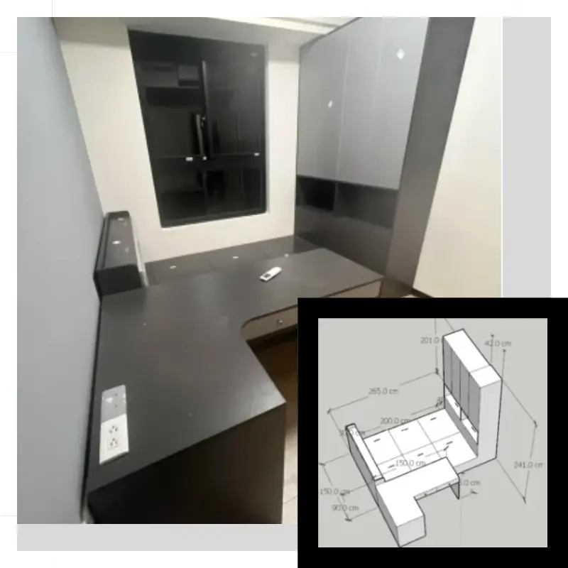這張圖展示了隱形式收納床的實際成品效果+3D設計圖效果