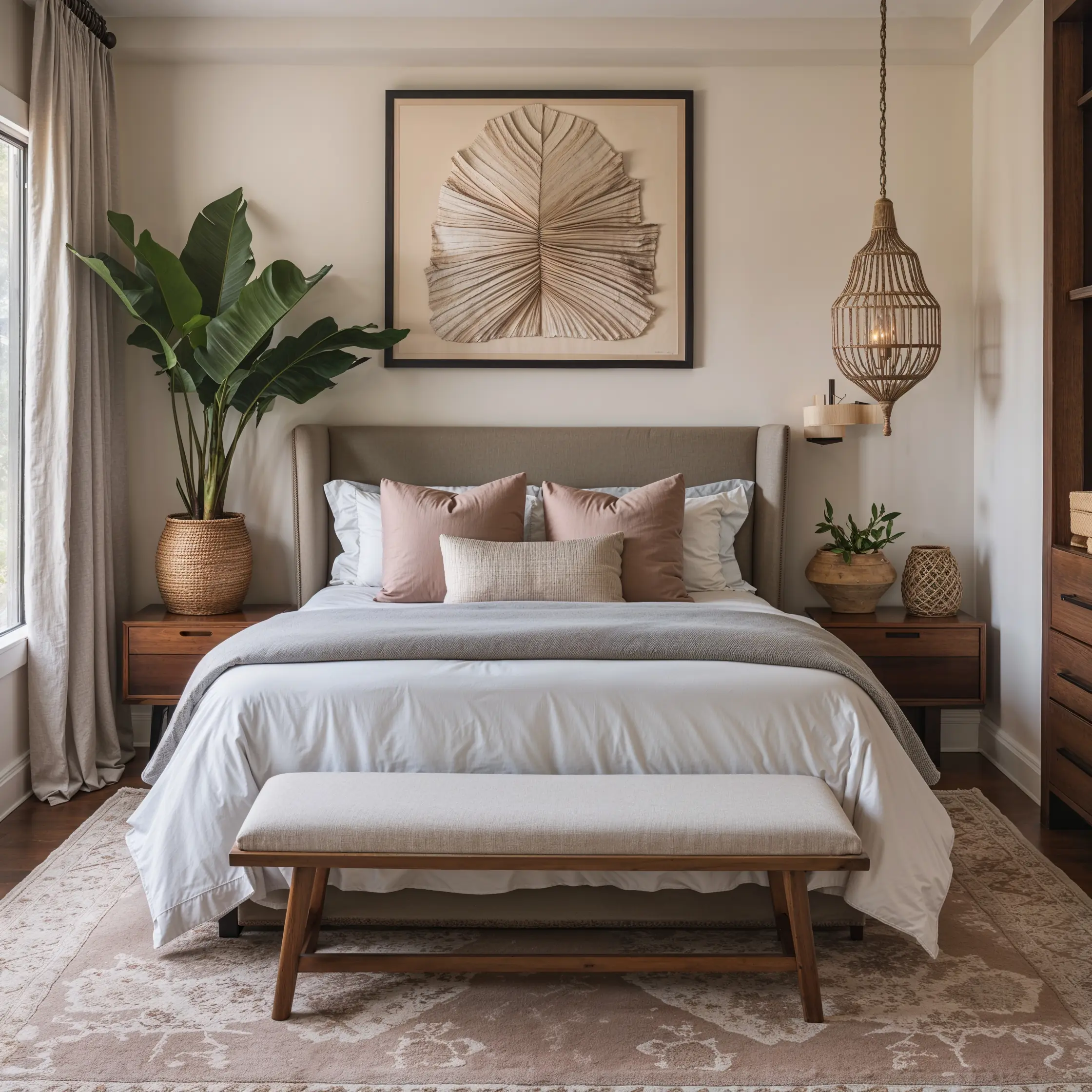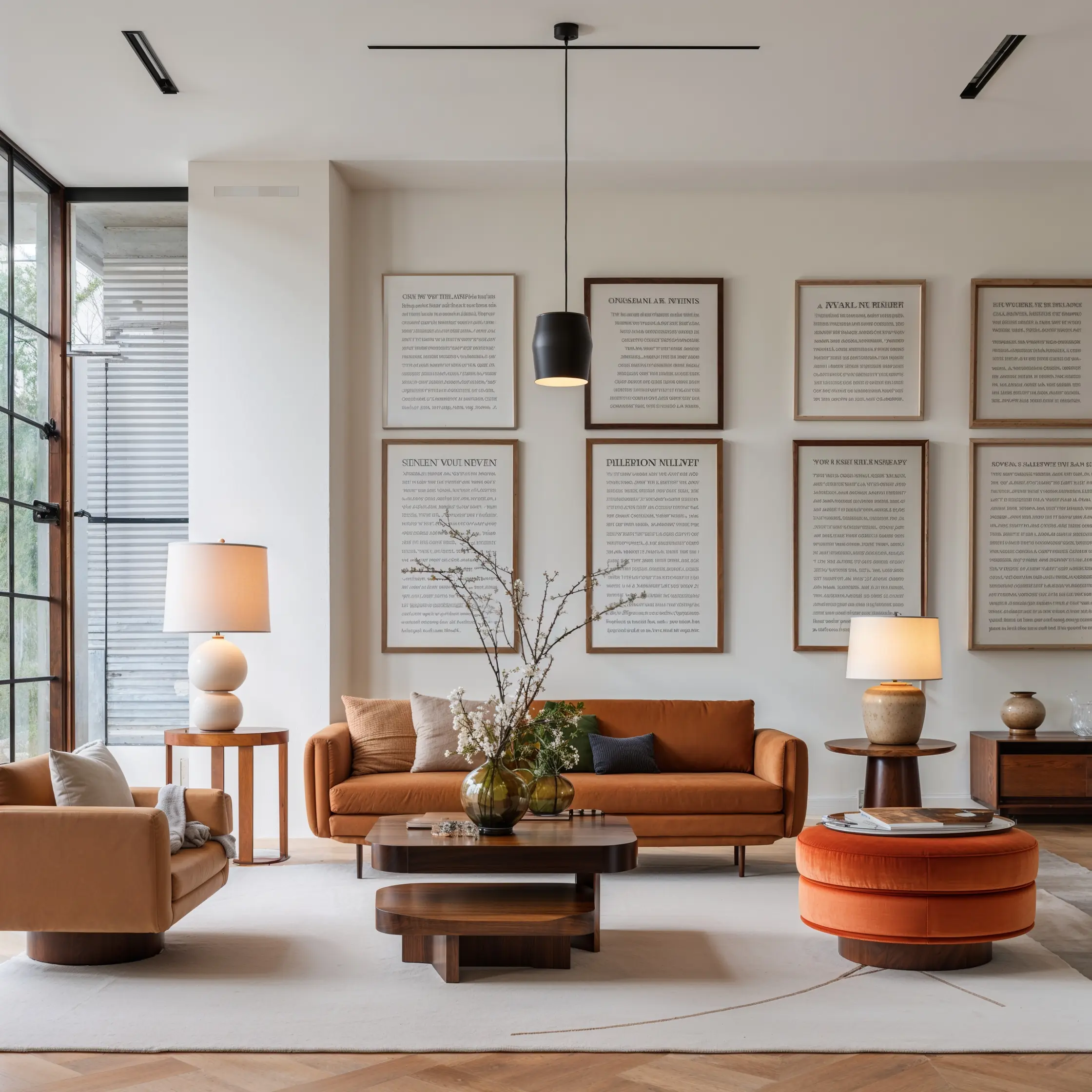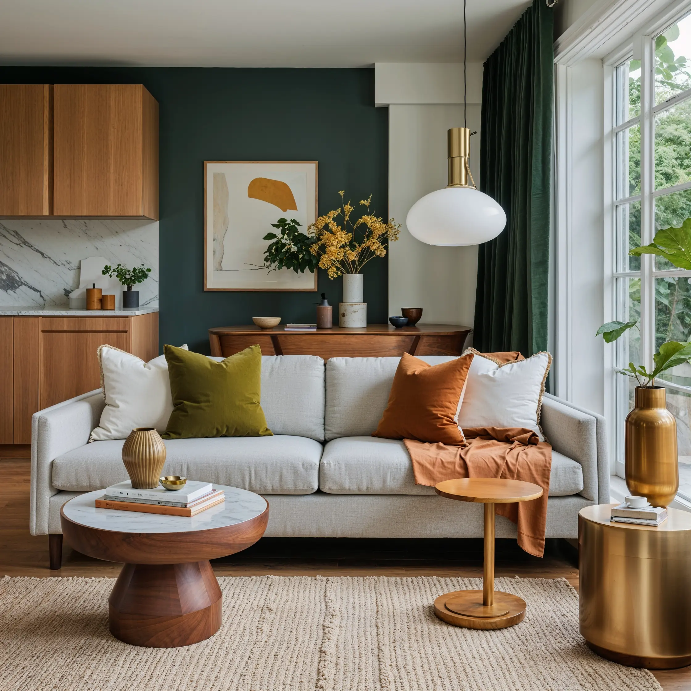 - 點綴色(5%):抱枕、花器、燈具(如黃銅、焦糖、卡其)