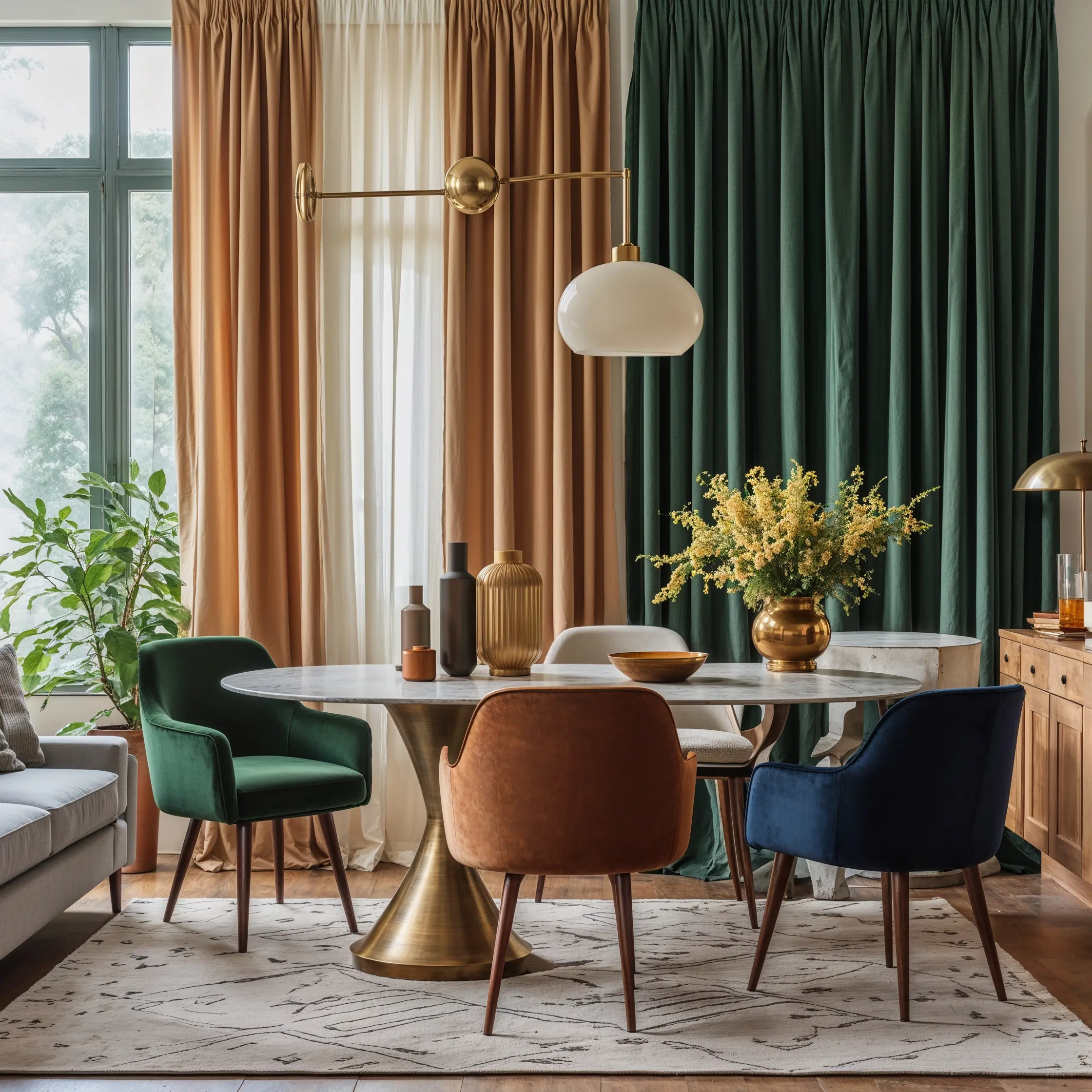 - 主調色(25%):餐椅、窗簾、床架(如墨綠、米白、深藍)