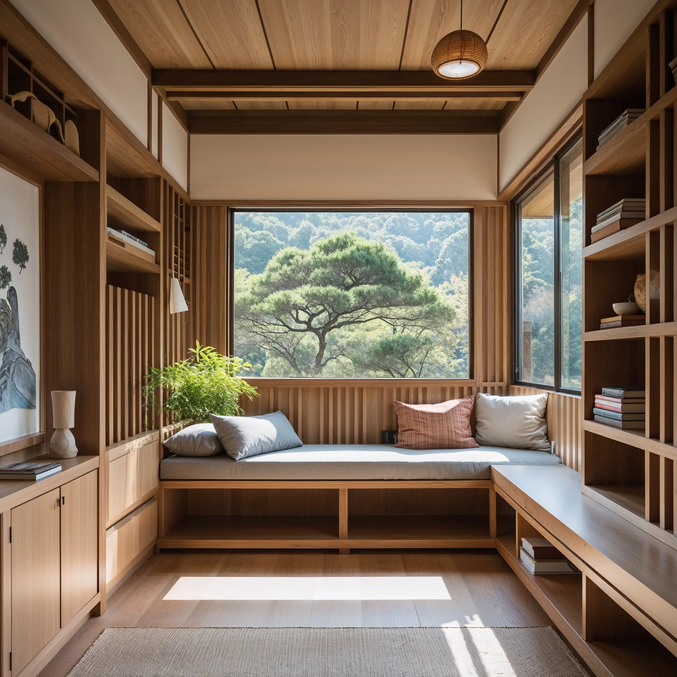許多日式空間會利用「架高地台」結合臥榻與收納,讓功能集中又保持整齊。